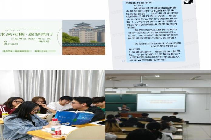 学院系统升级学业发展指导体系,开展指导性系列讲座。保研线上访谈精准解析院校选拔动态与个人定位;毕业生经验分享会汇聚多元发展路径实战智慧,提供跨届传承式生涯导航;专业化考研讲座聚焦备考策略与学科前沿,强化复习效能与应试能力;期末帮扶活动实现学业薄弱环节精准攻坚。系列活动以需求为导向,充分整合资源,显著提升指导精准度与学生获得感,为优化学风支持网络、深化学业发展内涵奠定坚实基础。