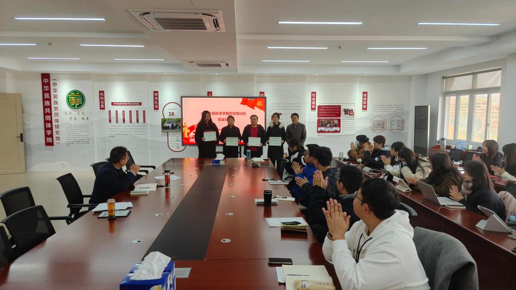 12月13日上午,我院在北书院508会议室举行2024年度秋季党校培训班结业仪式。院党总支书记贺展、副院长李学保教授、学工办副主任湛谌及培训班全体学员参加。结业仪式由学工办副主任湛谌主持。
