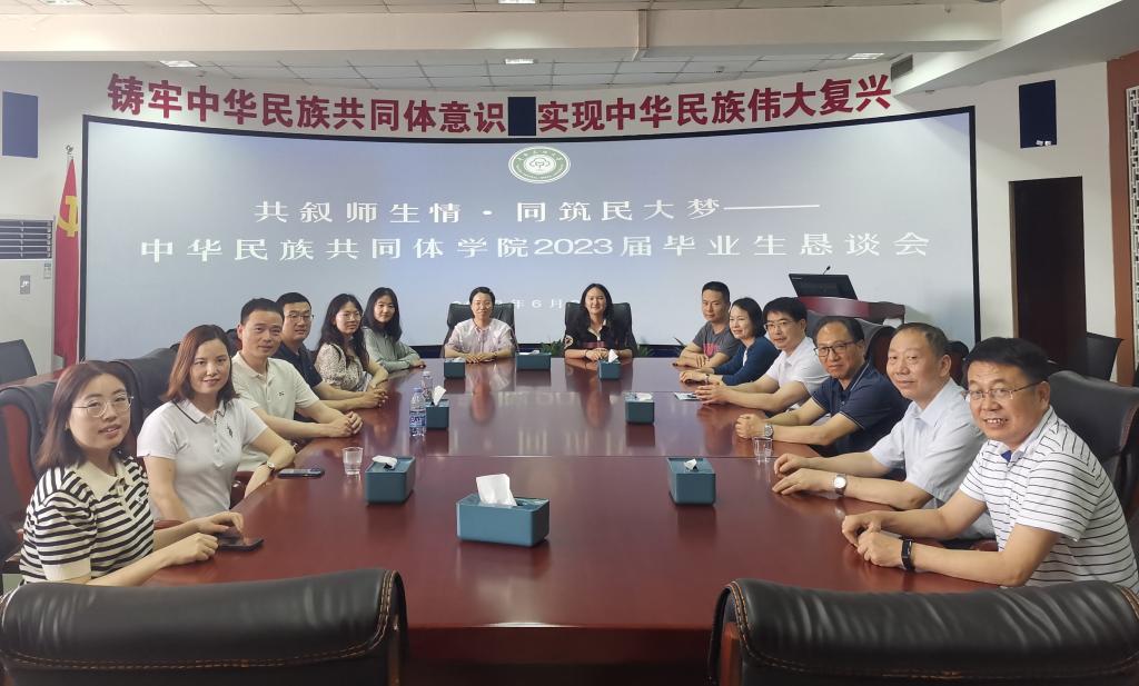 依依不舍惜别意,浓浓刻骨师生情。6月9日中午,我院隆重举行“共叙师生情·同筑民大梦”——2023届毕业生恳谈会。学院班子成员汤振华、姚上海、李学保、方清云,导师代表吴开松教授、裴圣愚副教授与我院2023届毕业生代表座谈话别。恳谈会由院党政办主任文田主持。