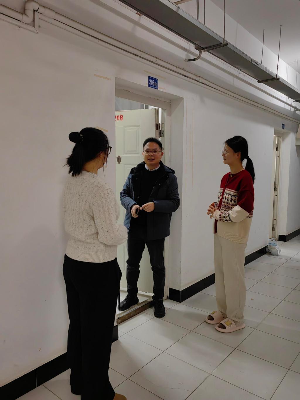 (走访学生寝室现场图。 湛谌 摄。)
