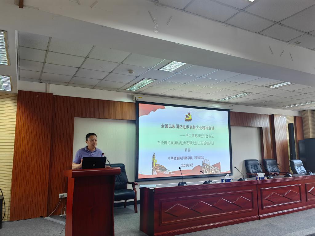 院长李从浩教授向同学们介绍了本次全国民族团结进步表彰大会的基本情况以及学院面临的新形势和新挑战,同时提出三点建议:一是不仅要打好理论基础,还要进行深入研究;二是每位同学要把自己当成学院的一份子,用好学院资源;三是要守好意识形态、言行底线。