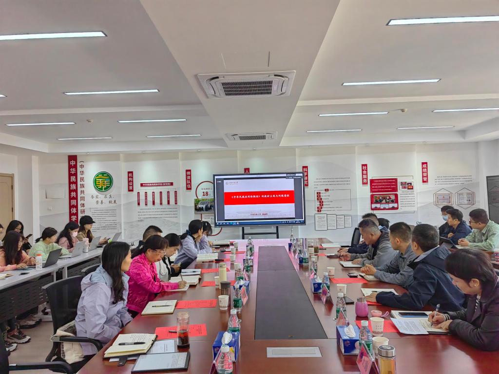 李从浩介绍了中南片区概论课虚拟教研室成立以来相关工作情况以及学院关于推进概论课中班教学等工作进展情况。中央民族大学教师陈丽明在线上以“《中华民族共同体概论》的教材主线与问题意识”为主题,从“概论”教材的重大意义、教材的框架主线、教材的问题意识以及教学设计与方法四个方面进行专题讲座。与会人员进行了交流分享。