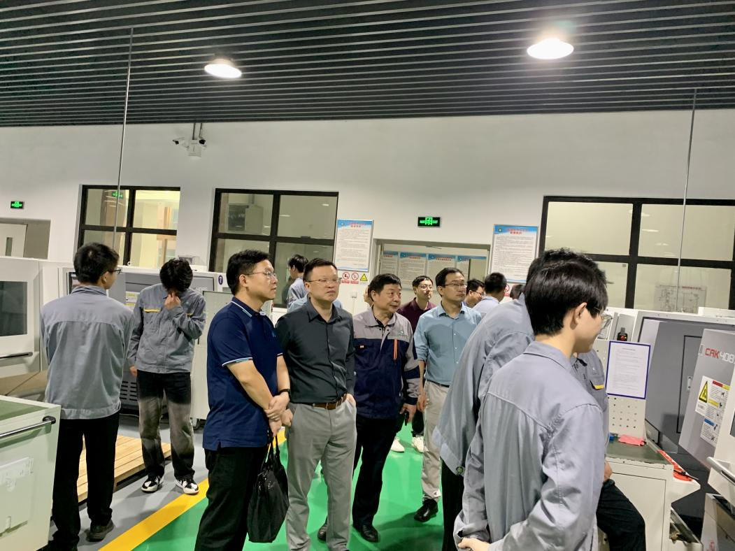 贺军陪同参观了机械加工实训室、先进制造实训室、智能制造虚拟仿真实训室、智能制造人才培养与实训基地等,并介绍了实训项目的运行情况。