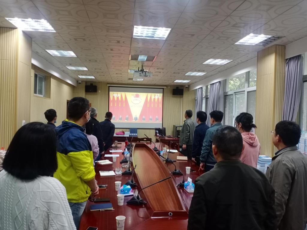2022年5月10日上午,国资处组织全处工作人员在4-215会议室观看习近平总书记在庆祝中国共产主义青年团成立100周年大会上重要讲话的现场直播。