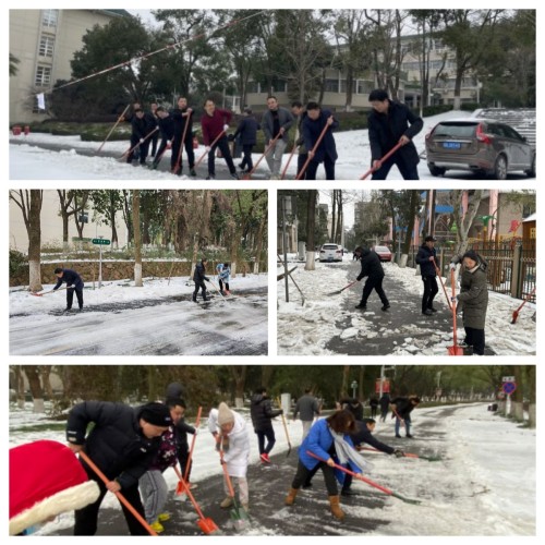 “雪前部署、以雪为令、随下随清、雪停路净”。后勤保障处党员、干部、一线员工冲锋在前, “机械+人工”密切配合,高效有序做好扫雪除冰工作,全力保障校园道路畅通和师生安全出行。