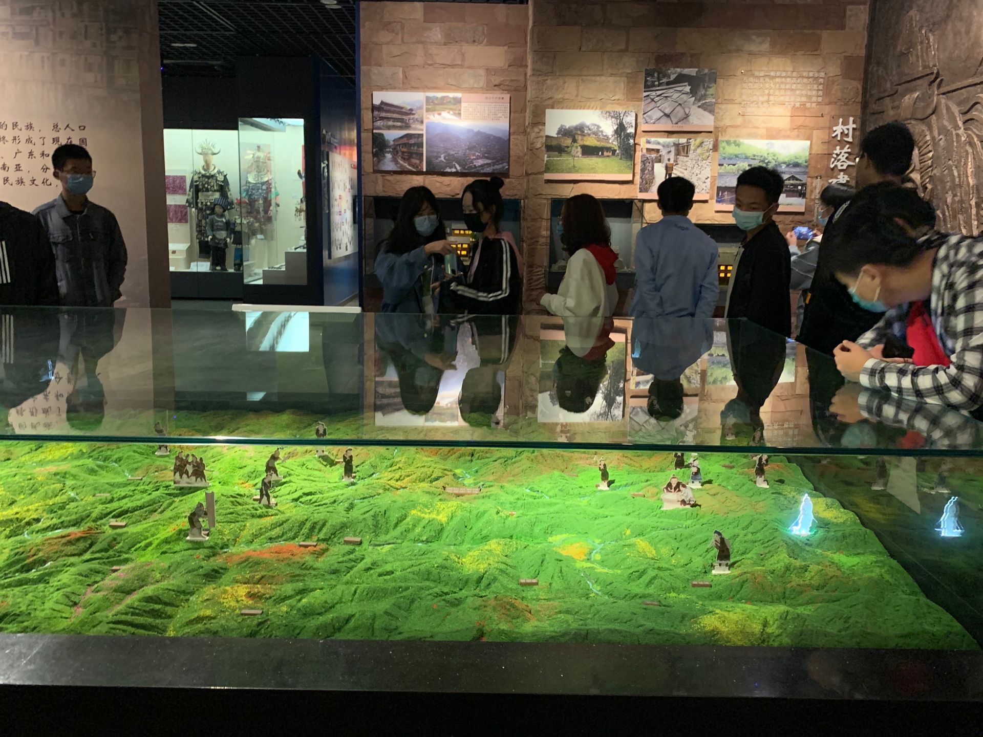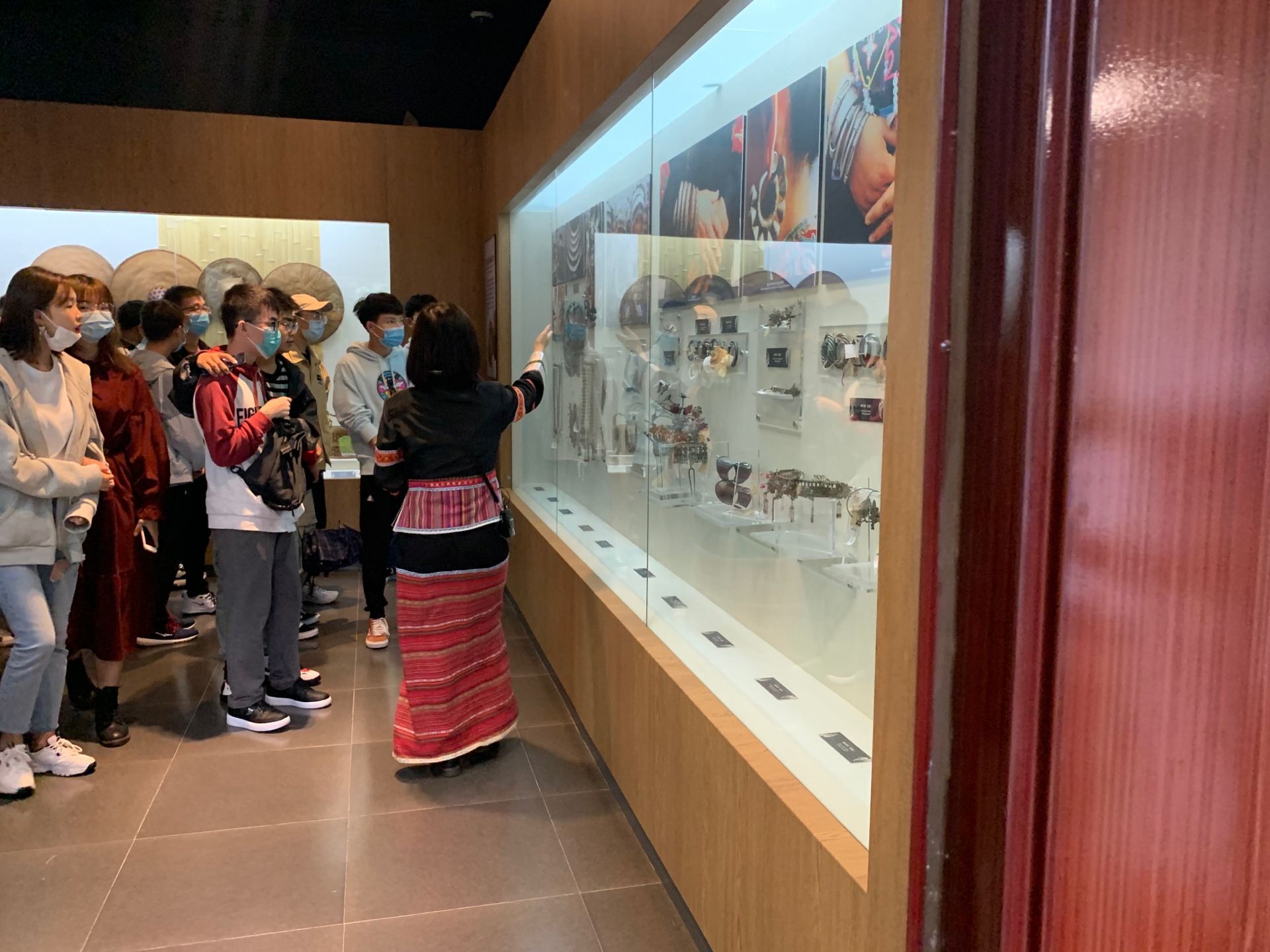 接着来到台湾少数民族文化展厅,在漫长的历史发展进程中,由于受环境影响、文化传统等不同因素的影响,台湾少数民族逐渐形成了今天各具特色的十几个族群,各民族服饰色彩斑斓,同学们纷纷拿起手机拍摄照片。苗族展厅通过泥人展示了苗族的婚礼庆典,由于历史上长期不断地迁徙,最终形成了现在人口广泛,创造了极为灿烂的民族文化。
