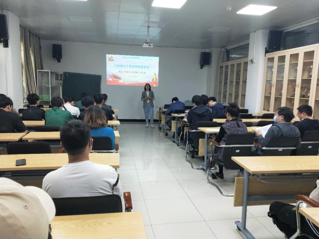 座谈会由高分子系教工党支部书记李婷同志主持,会议邀请了 26名19级高分子同学,并向同学们介绍了高分子系教工党支部参与帮扶活动的15位教师党员,并分析了目前19级高分子专业学生的学业情况。结合教师党员的专业优势和丰富的教学经验,会议现场15名教师党员与26位存在不同学业困难程度的同学结为帮扶小组,开展长期跟踪式的精准帮扶行动。