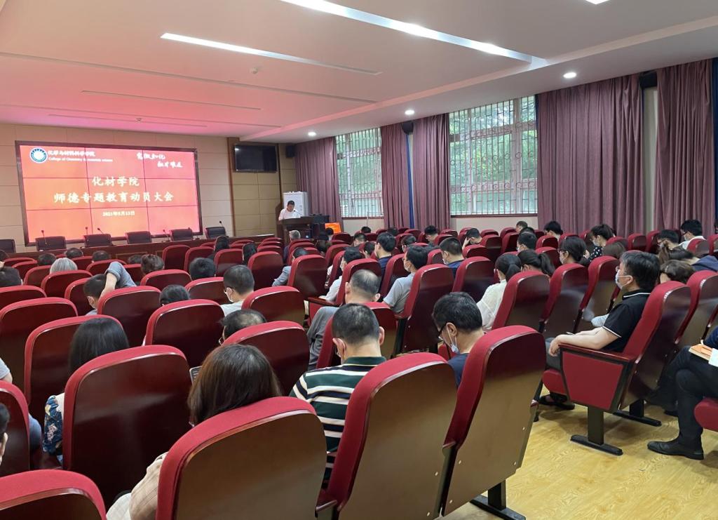 2021年5月13日下午,为深入学习贯彻习近平总书记在党史学习教育大会上的重要讲话精神,全面贯彻落实师德师风建设各项工作及贯彻部署校党委的各项要求,学院在化材院一楼大会议室召开“学党史 悟思想 立师德 做表率”党史学习暨师德专题教育动员大会。学院党政领导班子成员及全体教师参会,党委书记邓行同志主持会议。