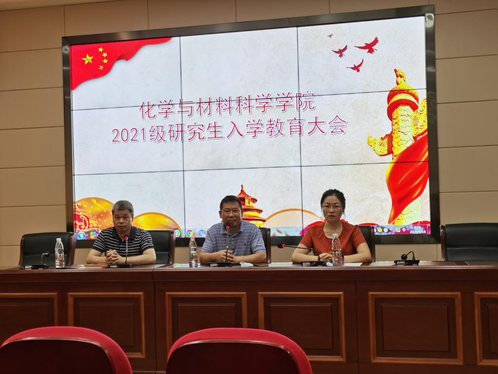 2021年9月14日上午8:30,我院研究生新生入学教育会议在化材院一楼大会议室顺利召开。本次会议由研究生辅导员主持,学院党委书记邓行、院长张道洪教授、副院长金士威教授、教师代表洪景萍教授、及化材院2021级全体研究生参加了此次会议。