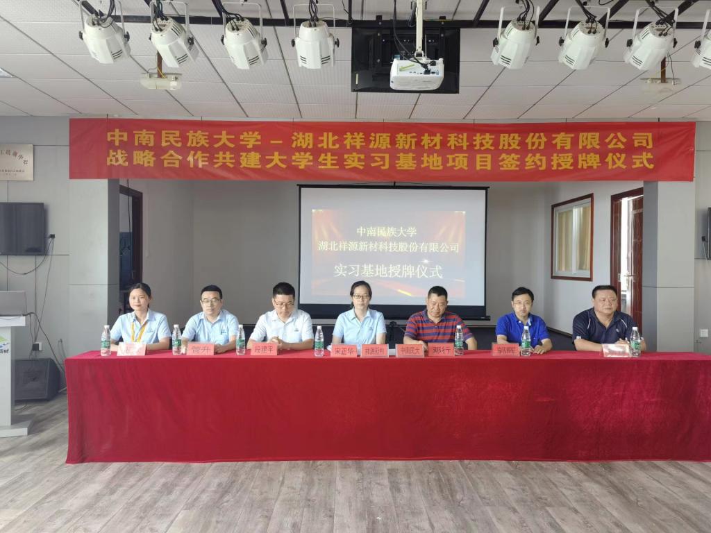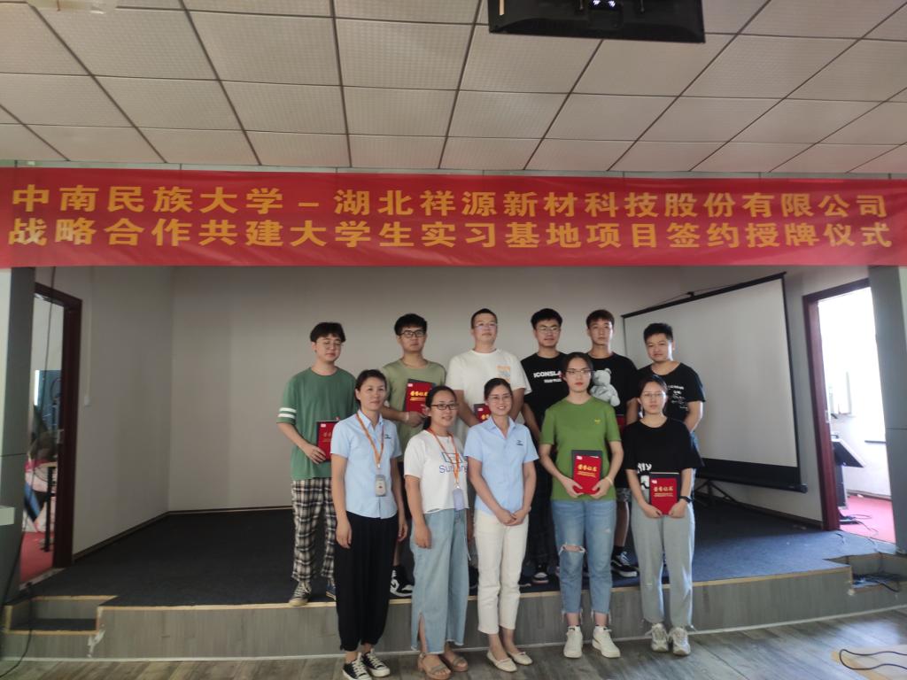 随后,邓行书记与祥源新材企业代表签订了合作协议并授牌,此次签约授牌仪式是祥源新材与中南民族大学产学研合作的开端。校企双方都殷切希望能以这次签约授牌为契机,进一步加强校企合作与交流,优势互补、共同发展、抓住机遇,实现共赢。随着beat365英国正版唯一网址实习实训基地牌匾在祥源新材的正式落成,祥源新材也迎来首批beat365英国正版唯一网址实习学生,他们全部来自beat365英国正版唯一网址化学与材料学院高分子材料与工程专业。