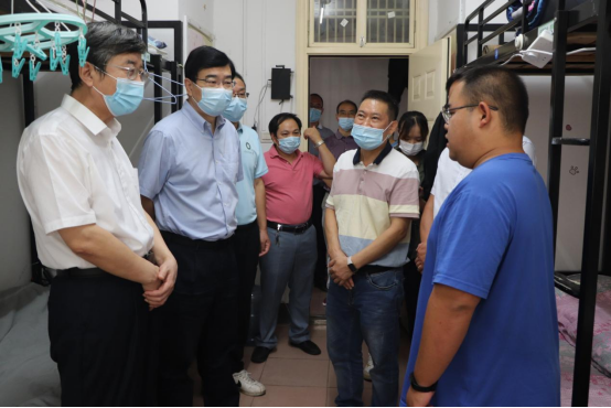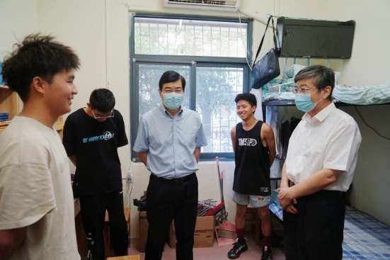 在学生寝室,校领导了解了同学们的住宿环境和生活情况,充分肯定了同学们对防疫工作的支持,希望同学们继续遵守防疫规定,积极培育互帮互助的寝室文化,共同维护安全稳定的校园环境;详细询问了同学们的学习或就业情况,希望同学们打牢专业基础、多去自习室、多进实验室,勉励同学们树立正确的就业观,有意向考研的同学合理设定目标,积极备考,争取早日“上岸”。他们还希望同学们多参加体育锻炼,强身健体,永葆青春朝气。
