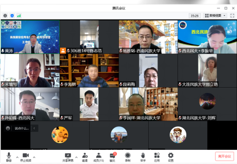与会成员一致同意教研室工作组及专家组设置,并分别就工作计划发表了意见。西南民族大学杨胜韬教授、西北民族大学孙初锋教授、内蒙古民族大学段莉梅教授、青海民族大学李海朝教授、大连民族大学那立艳副教授、湖北民族大学李国祥教授、广西民族大学严军教授等纷纷就学生实习、教材建设、教研会议、名师示范课等工作计划进行了发言,提出了建设性的建议。尤其是在合作教研方面,大家一致认为,在当前的疫情形势下,云实习是解决当前学生实习环节的重要方式,值得推广,并建议民族院校间开展云实习合作,共享云实习计划、内容和过程。对于轮流主持教研专题会议及名师示范课的开展,大家也纷纷表示赞成和支持。会议还确定西南民族大学为下一届虚拟教研室教学研讨会的主办单位。