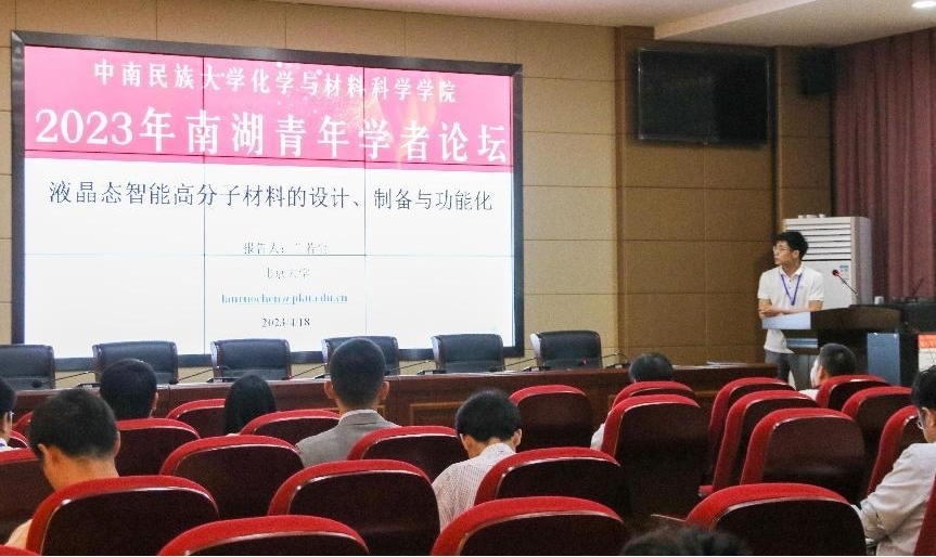 4月18日上午,化材学院2023年南湖青年学者论坛在7号教学楼举行。此次论坛采用线上线下相结合的形式,共有12名青年学者带来了精彩的学术报告。校党委书记边境,化材学院党委书记邓行、院长张道洪、药学院院长付海燕,化材学院领导班子其他成员、学术委员会成员,校级教学督导、李文珂校友等参加了论坛开幕式。邓行主持开幕式。
