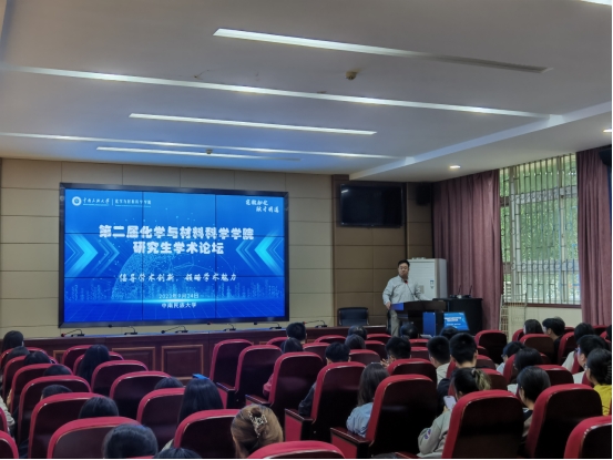 为进一步加强我院研究生培养工作,提高研究生培养质量,营造浓郁学术氛围,引导研究生提升学术素养、开拓学术视野、促进学术交流,切实提高研究生的科研能力和学术水平。化学与材料科学学院于2023年9月24日成功举办以“领略学术魅力,倡导学术创新”为主题的第二届研究生学术论坛活动,院党委书记祁帆、院长张道洪、副院长王立、导师代表洪景萍、陈连清、胡小强、姜宇出席学术论坛开幕式。