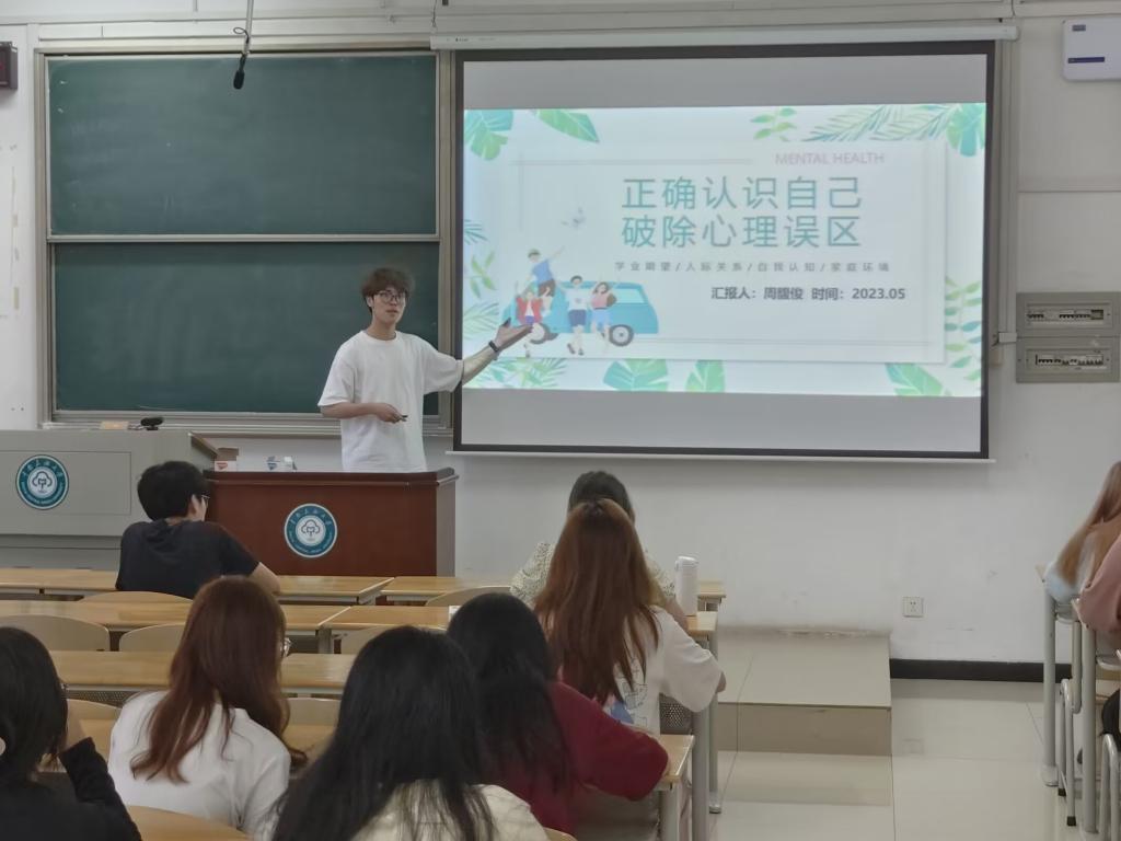 各班通过PPT解说、播放心理健康科普视频等形式展开。针对同学们易出现的人际交往及情绪问题,通过对心理健康知识的学习交流进行原因分析、讨论缓解方式,以多种方式传授心理调适小技巧,在班会中发挥朋辈辅导的心理健康作用。本次班会旨在引导学生不断提升心理健康水平,增强心理健康知识,帮助同学们学会自我关怀,实现共同成长,以积极开放的心态面对成长中的困惑和挫折。