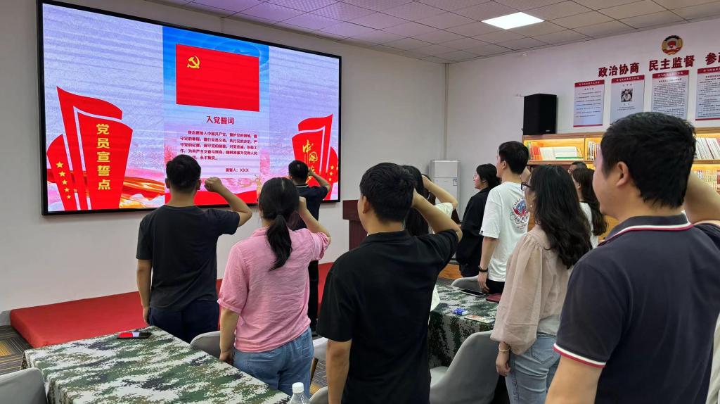 活动在会议室达到高潮,在这里,全体党员整齐列队,庄重地重温入党誓词。铿锵有力的誓言在会场上空回荡,每一个字、每一个词都充满了对党的忠诚和对人民的热爱。这一刻,党员们深刻体会到了不忘初心、牢记使命的重要性,更加坚定了他们为共产主义事业奋斗终生的信念。