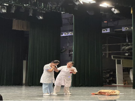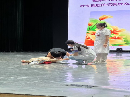 此外,校医院杨冰医师、雷莎医师为同学们普及了日常急救知识,包括外伤、酒精中毒、烫伤、中暑、溺水、气道梗塞和心脏骤停等紧急情况的急救措施。医师不仅进行了理论讲解,还现场演示了海姆立克急救法和心肺复苏操作,并组织同学们亲身体验。