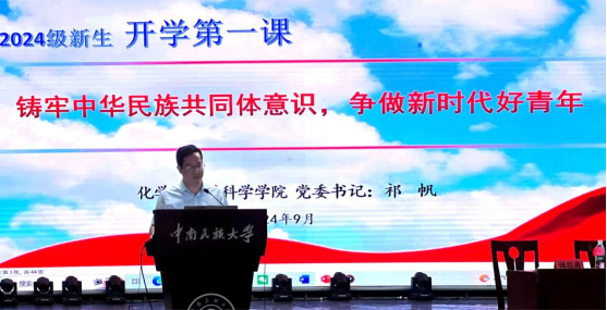 党委书记祁帆以“铸牢中华民族共同体意识,争做新时代好青年”为主题,为新生们讲授了开学第一课。他强调,新时代高校大学生作为国家的未来与希望,必须铸牢中华民族共同体意识,坚定理想信念、自觉增强“五个认同”,树立正确的民族观与宗教观。
