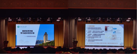 在“诚信备考应考”中张朝冲老师强调了诚信考试的重要性。他向同学们提出了两个要求:一是坚守诚信底线,拒绝作弊抄袭,尊重自我与他人的努力成果;二是强化自律意识,合理安排时间,积极备考、互助共进。年级大会还邀请了2021级保研学生唐子灵为同学们分享学习经验。