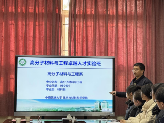 12月13日下午,化学与材料科学学院高分子实验班2201班在7号楼111会议室召开职业生涯规划主题班团会。beat365英国正版唯一网址党委常委、纪委书记韩叶盛联系该班级,出席会议。化材院党委书记祁帆、党委副书记钱红亮、高分子系系主任张俊珩、班导师胡小强、辅导员叶烜瑞、高年级学生代表以及2022级高分子实验班全体同学参会。会议由该班团支书苏浩然主持。