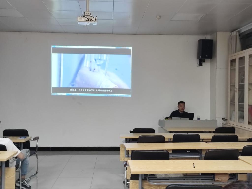 宣讲会上,张先生向有意向应聘本公司的同学们表示欢迎,他介绍了公司的地理位置(现有襄阳总部和武汉分公司两个地点,襄阳总部位于湖北省襄阳市襄城经济开发区,武汉分公司位于湖北省武汉市团结路东原时光广场B座12 楼),同时非常清晰地介绍了公司的各项部门和工作岗位以及公司近三十年的战略定位和目标。公司具有“专业”“严谨”“创新”“关爱”的核心价值观, 肩负“坚持客户第一,以高质量的产品,关爱人类健康”的使命,使用“先问目的,再做推演,亲自参与,及时复盘”的工作方法,以“制造高效安全的优质产品,成为领先的专业化高科技制药企业”为宗旨。张先生介绍了公司自建设以来获得的各类奖项和荣誉称号,肯定了外界权威对本公司的高度认可。他着重强调了公司具有完善的人才体系和职业化的人才培养计划(青苗班、青松班、黄埔班全职业生涯持续培养),详细地介绍了多方向的晋升通道和大学生定岗情况,让同学们深入了解了本公司员工的职业发展道路。张先生介绍公司具有完整的产业链,以及公司生产的产品和产品的市场营销情况。