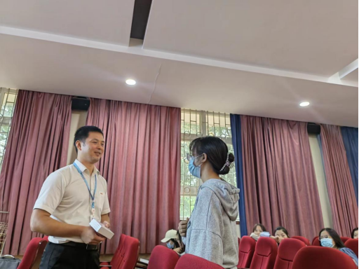 最后,贵先生介绍了岗位需求和招聘环节等两个方面的招聘内容。需求遍及多个工作地点,职位有研发技术、智能制造、安全环境等多个类别;招聘环节有网上报名(通过关注亿纬锂能公众号,扫描网申二维码注册,并找到相关岗位进行简历投递)、随后进行宣讲、HR初试、复试、综合测评、签约录用;或可当场向HR交递简历,在当晚安排合适的时间地点直接进行初试。宣讲结束后,贵先生及在场的面试官们热情地回答了同学们的问题,有意向的同学现场提交了简历。