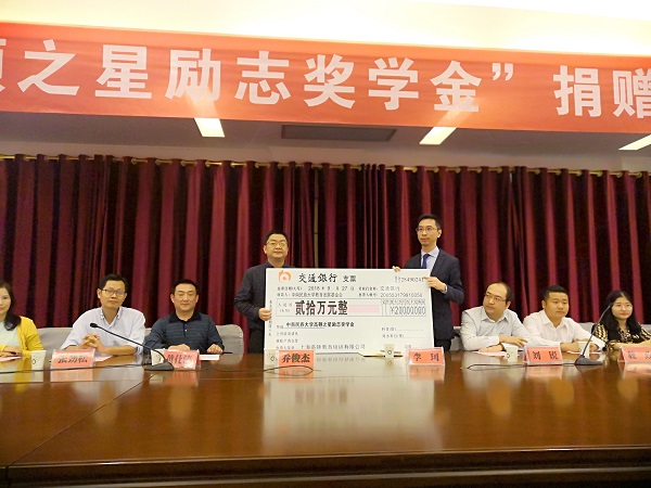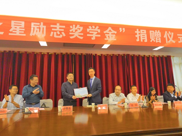 李珂代表上海高顿教育集团向beat365官网捐赠了“高顿之星励志奖学金”20万元,乔俊杰代表学校回赠捐赠证书。