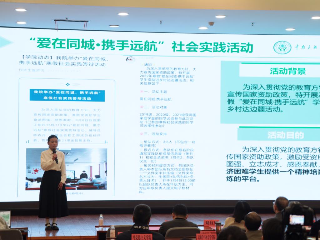 特邀嘉宾哈正利和张艺分享了各自的自立自强故事。民族学博士生导师哈正利多年扎根在田野调查中,面对调查对象的不理解,调查难以推进时,会积极与调查对象建立亲密的朋友关系,努力克服客观困难条件,为民族学学科建设发展贡献了自己的光与热。文学与新闻传播学院2021级研究生张艺,担任我校第2022届研究生支教团队长参加武陵山区支教,并多次加入防疫志愿者队伍,在磨砺中见风雨、长才干、练筋骨,获2021年“中国大学生自强之星”和湖北省“大学生自强之星”。作为兼职学生辅导员,张艺建议青年学生要敢想敢做,不怕“试错”,找准方向向前而行。