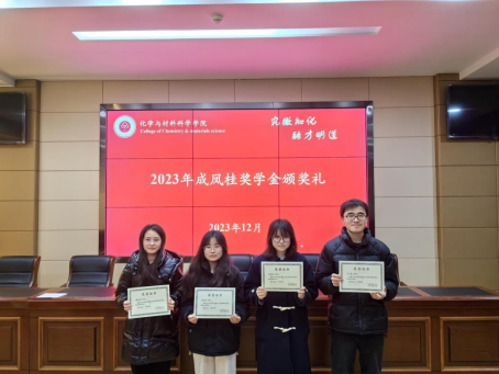 成凤桂奖学金是由成凤桂教授捐赠并设立,用于奖励化学与材料科学学院综合素质发展进步显著的的学生,每年奖励4名。本次典礼为2023年奖学金获得者进行颁奖。