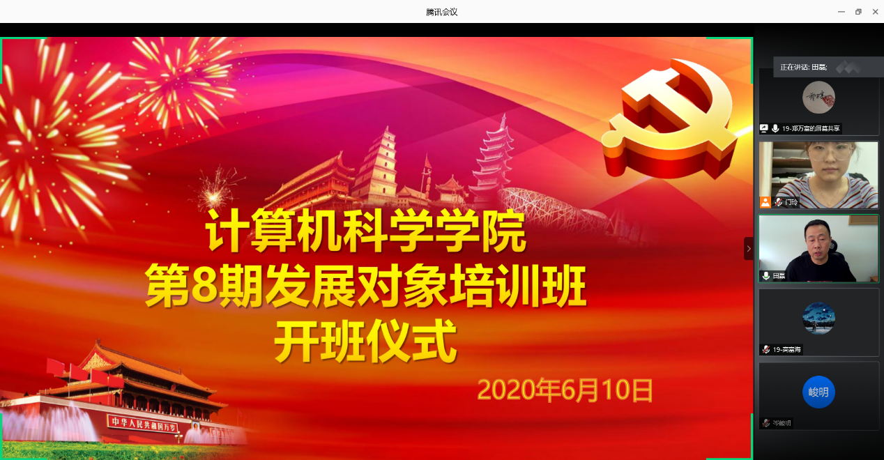 2020年6月10日下午四点,依托网络平台,beat365英国正版唯一网址举办2020年度第八期发展对象培训班视频开班典礼。学院党委书记岑峻明、副书记田磊、2017级辅导员汤渊、2018级辅导员王梦莞、2019级辅导员杨晓磊出席了本次活动。会议由培训班班主任老师门玲主持。