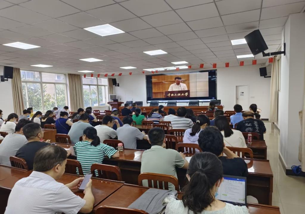(学院教职工党员在学院分会场参加线上会议 白志威摄)