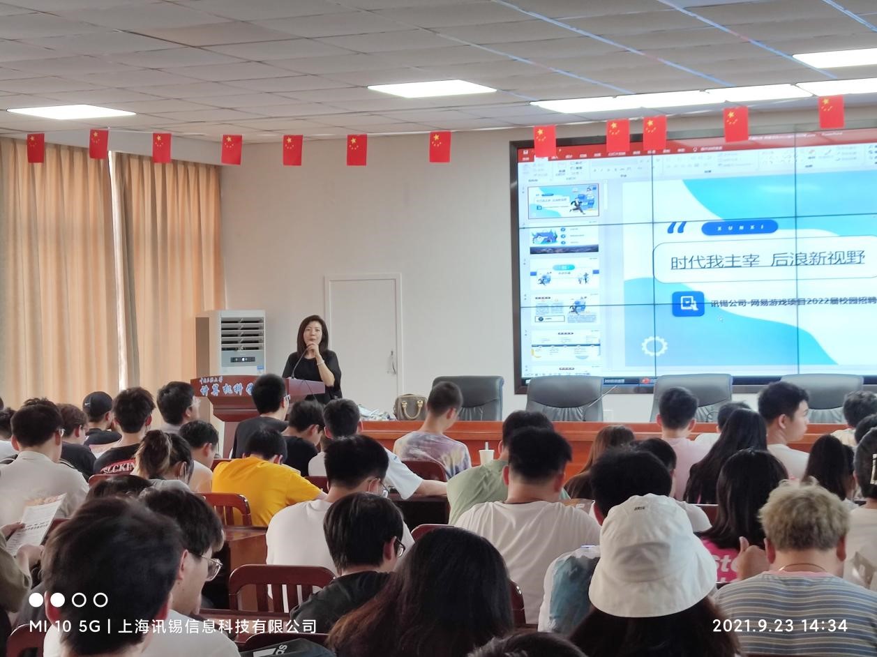 2021年9月23日,beat365英国正版唯一网址在9号教学楼211教室举办上海讯锡信息科技有限公司专场招聘会,2018级部分学生参加招聘会。