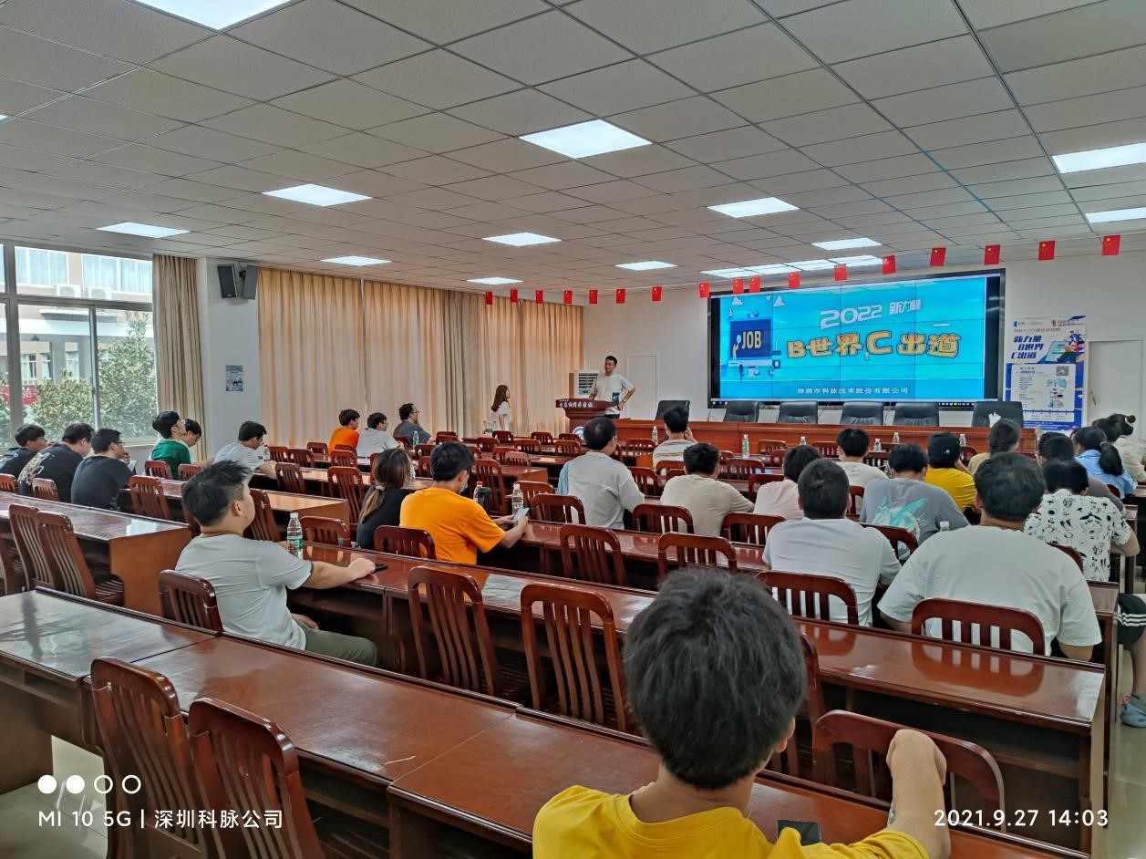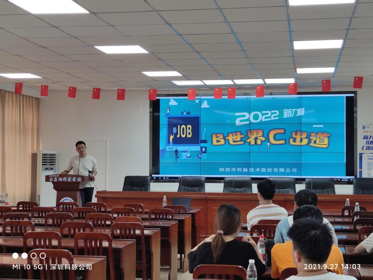 2021年9月27日下午,beat365英国正版唯一网址在9号教学楼211教室举办深圳市科脉科技有限公司专场招聘会,2018级部分学生参加招聘会。