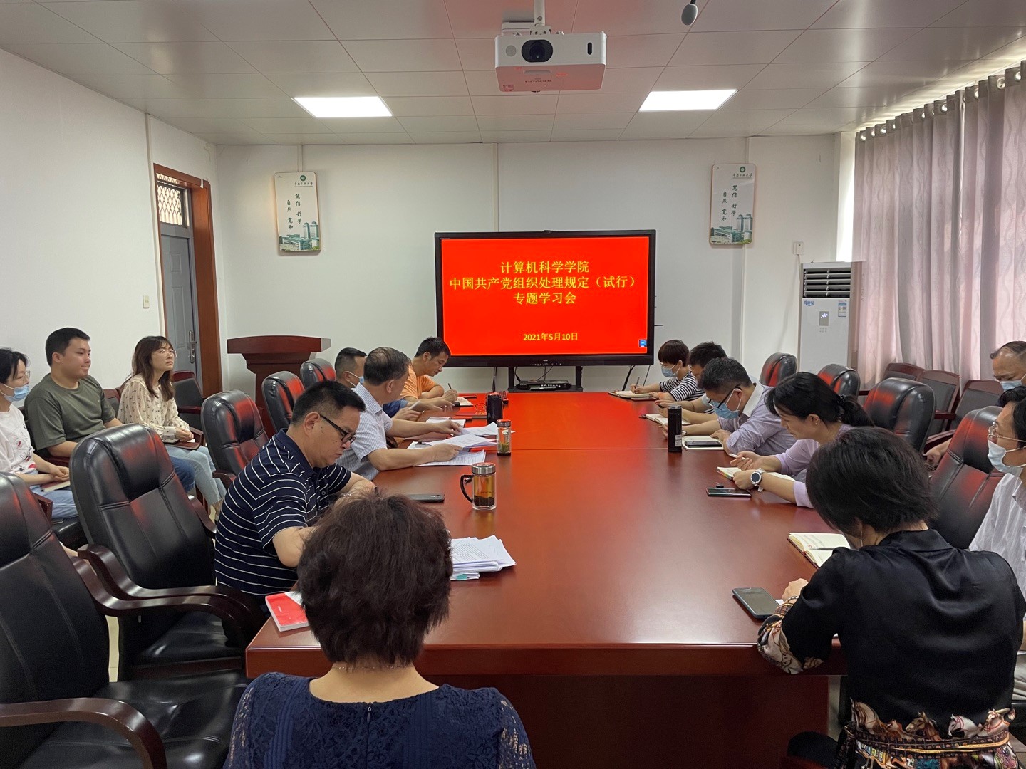 2021年5月10日上午,beat365英国正版唯一网址党委在9栋213召开专题学习会,学习研讨《中国共产党组织处理规定(试行)》(以下简称《规定》。学院党委委员、党支部书记、教研室主任、全体科级干部参加会议。会议由党委书记岑峻明主持。