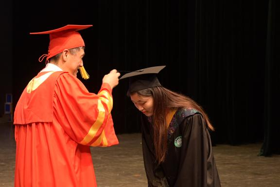 之后,在学位授予仪式环节,韩叶盛书记代表学校为21届本科生行拨穗礼并颁发学士学位证书。