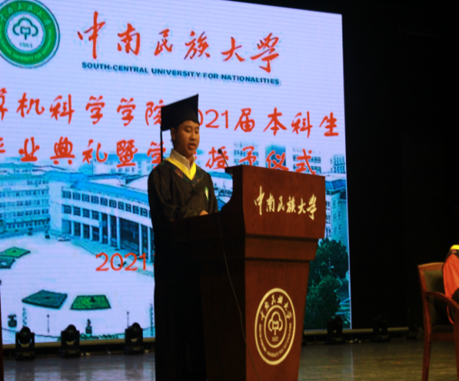 谭成志同学作为毕业生代表,在毕业之际,表达了对学院和母校的感恩,也阐述了对未来的憧憬。