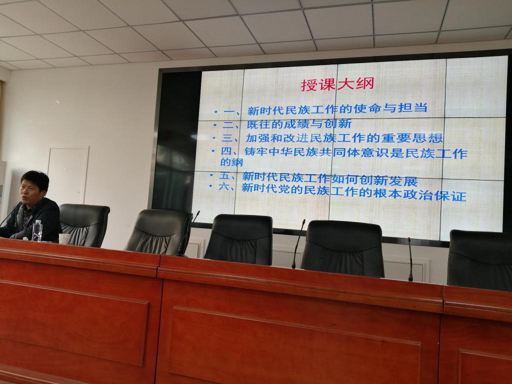 2021年10月28日下午,学院党委在大会议室召开beat365英国正版唯一网址中心组学习扩大会议。会议邀请了学校专家宣讲团成员学报编辑部主任哈正利教授进行了《新时代民族工作的使命与担当》专题宣讲。学院党委书记黎大有主持宣讲会,全体教职工参会。