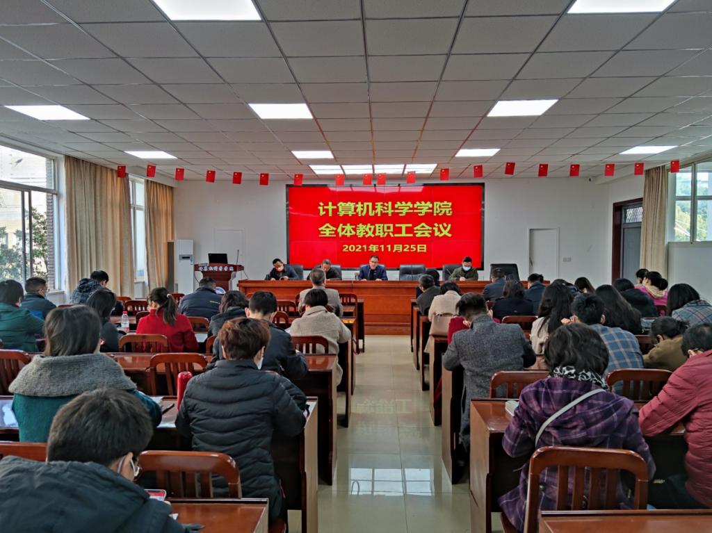2021年11月25日,计算机科学学院在学院大会议室召开全体教职工会议。会议由学院党委书记黎大有主持,学院全体教职工参加了会议。