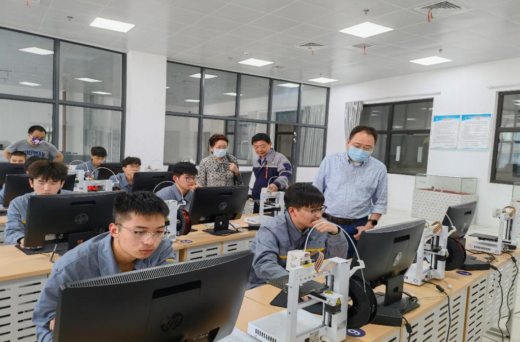 学校工程训练中心贺军主任、秦燕斌老师等热情接待并带领大家参观了科技园区--工训中心的数控车床、普车、钳工、加工中心等各个工训环节的车间,详细介绍了各专业学生们正在不同工种场景开展工程训练的具体情况。