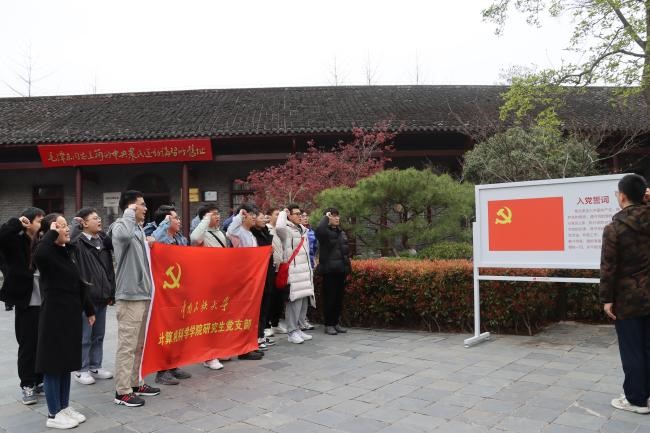 最后,我们全体党员在农讲所正门前进行重温入党誓词环节。