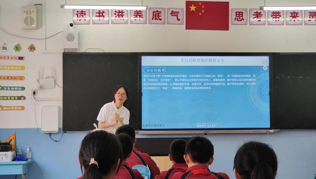 活动中李玉兰同学与学生积极互动,生动有趣地给学生们介绍了什么是数据和数据的保密性,学生们积极回答,积极参与,李玉兰同学与学生们共同探讨列举了一系列可能发生数据泄露的场景,使得学生们更加理解数据泄露无时无刻不在发生,在日常生活中也能更加注重保护自己的数据安全。学生们了解了数据泄露带来的危害,积极思考怎样做才能保障好数据安全,在李玉兰同学的讲解下让学生们认识了零信任模型以及零信任模型的优点,希望学生们在日常生活中遇到数据泄露风险时能够保护好自己的数据安全。
