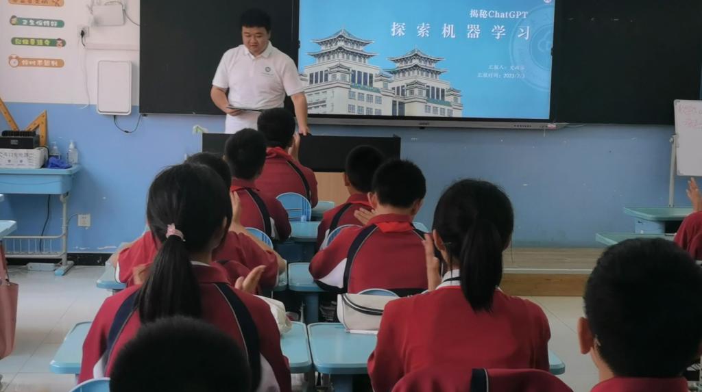 2023年7月3日,为弘扬科学精神、普及科学知识,激发青少年科学梦想和科学志向,培养学生的科学素养,丰富安顺地区人工智能与信息安全知识传播与普及,推动全民科学素质建设和提升,经安顺市政府办秘书一科刘洋科长的协调与陪同,beat365英国正版唯一网址beat365英国正版唯一网址朱剑林老师指导的平安顺意科普小队在安顺市经开区教育局副局长、安顺市实验学校(经开区分校)校长梁冬洪与执行校长杨苧的大力支持下,赴安顺市实验学校(经开区分校)七年级一班开展以“揭秘ChatGPT,探索机器学习的世界”以及“如何做好数据的保密性”为主题的科普活动。