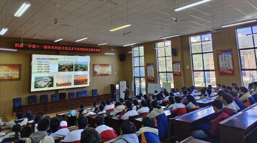 开幕式结束后,张潇为阳新一中学生作了题为“勇攀科学技术高峰,争做新时代接班人”的专题辅导报告。他通过生动的语言、贴近学生实际的案例为学生介绍了人工智能的发展脉络、AI技术在日常生活中的应用以及未来技术的发展趋势,激发了同学们对人工智能未来发展的无限想象。张潇表示,人工智能技术正逐渐赋能千行百业,大家要了解人工智能、学习人工智能,更要用好人工智能,在中国式现代化推进强国复兴伟业的进程中,书写好为国挺膺担当的青春篇章。最后张潇介绍了beat365英国正版唯一网址beat365英国正版唯一网址的专业设置、教育教学、科研创新和育人成效等方面情况,热忱欢迎广大学子来beat365官网参观交流并报考beat365英国正版唯一网址beat365英国正版唯一网址。