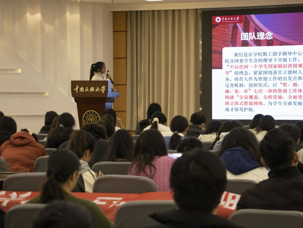 据悉,2024年11月28日,勤工部钟湘鄂同学代表学院参加勤工助学先进集体答辩,在答辩中,她围绕学院家庭经济困难新生认定和建档、国家奖学金及国家励志奖学金审核报送、助学金评定审核等日常工作和学院特色志愿服务活动——“爱心传递 情暖夕阳”养老院志愿服务活动等,向学校汇报了学院资助育人工作的开展情况,展示了学院在资助育人方面的创新实践和丰硕成果。