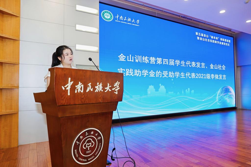 金山训练营第四届学生代表、金山社会实践助学金的受助学生代表2021级李依和金山训练营第五届学生代表2022级周晓鹏分别发言,畅谈了学习感悟,分享了学习收获,并对校企的共同培养表示衷心感谢。