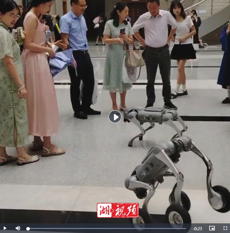 【湖北日报】会场外,两只机器狗吸引师生拍照
