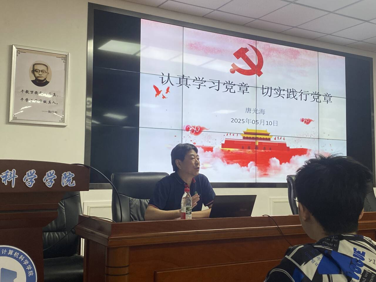 在党员党校培训班中,计算机学院(人工智能学院)正处级专职组织员唐光海以《认真学习党章 切实践行党章》为题,详细阐述了党的性质、行动指南、基本路线和党的建设,重点指出了入党的条件、党员的标准和权利义务,他强调党章是党员的行为准则和行动指南,每一位党员都要认真学习党章、切实践行党章,并号召同学们要强化党性修养、规范日常行为、实践知行合一,争做讲政治、有信念,讲规矩、有纪律,讲道德、有品行,讲奉献、有作为的合格党员。