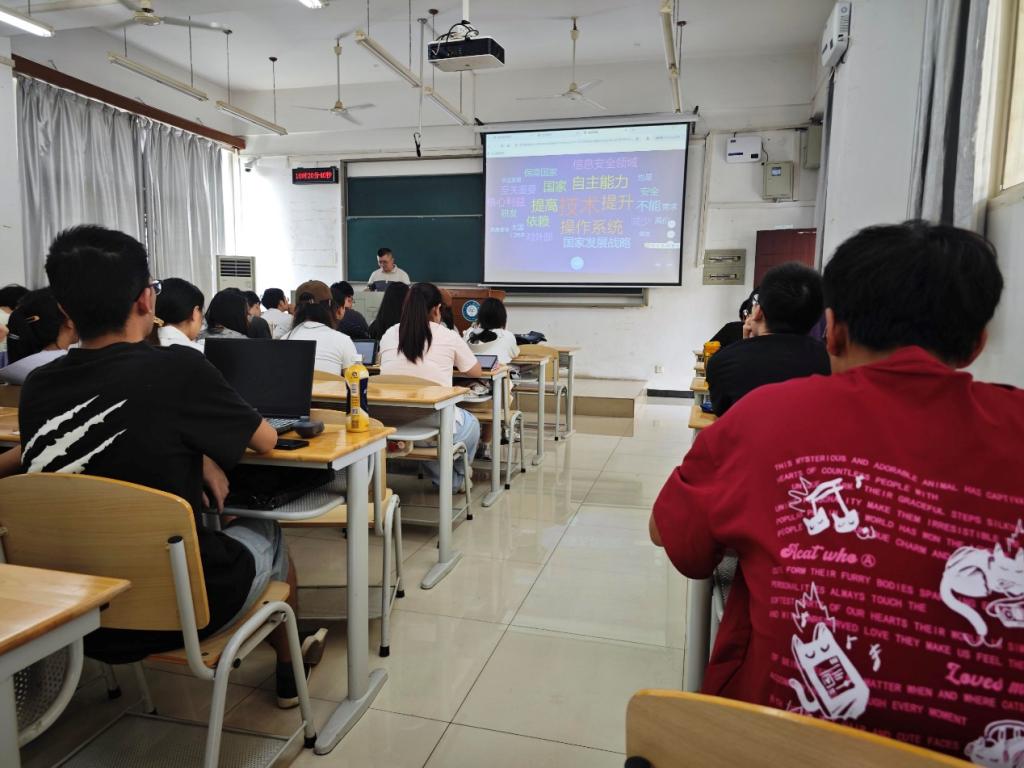 艾勇老师围绕《操作系统原理(B)》课程第二讲“操作系统的发展历史”及“操作系统的结构”展开讲解。首先引导学生以科学家的角色来学习操作系统的发展历史,通过沉浸式体验技术的发展和需求的变化,来理解各个历史时期操作系统的演化。在上个世纪50年代,我国的计算机和操作系统发展还远远落后于西方国家,如今我国已经在多个领域追赶并实现反超,激发同学们的民族自豪感和奋斗意识。通过电视剧《功勋》中于敏院士的一个片段,在直观展示我国的前辈科学家们认真科研的同时,让同学们理解了人工操作阶段操作系统的运行机制和缺点。最后在课堂开展开放式讨论“为什么必须自研操作系统?”,通过对同学们回答的词云分析很好地了解同学们的想法,对同学们的爱国情怀和积极向上的奋斗信念进行了充分的肯定和赞扬。