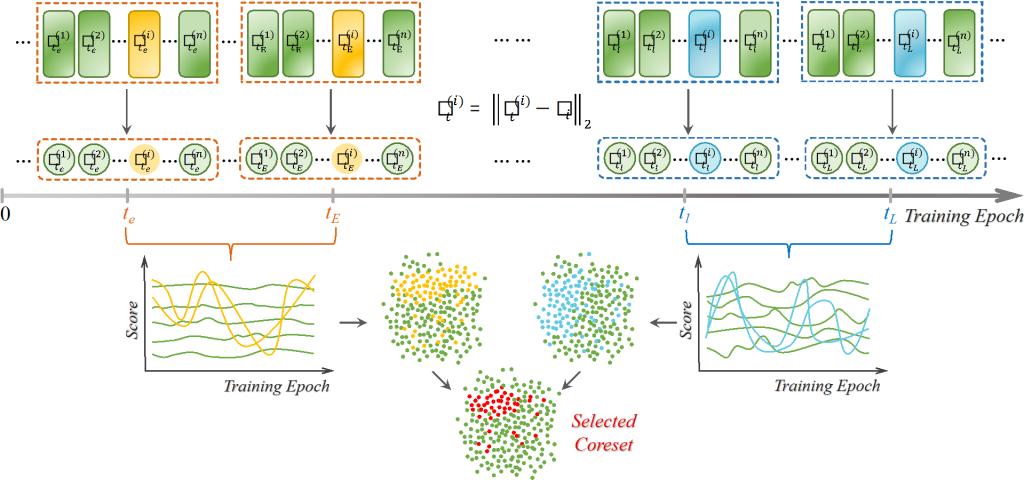 为了解决这一问题,beat365英国正版唯一网址智能计算理论与网络安全团队提出了一种新的核心集选择策略,称为"Evolution-aware VArance (EVA)"。EVA通过双窗口方法捕捉模型训练的进化过程,并通过方差测量更精确地反映样本重要性的波动,从而挑选出更能代表原始数据集的核心子集(coreset)。