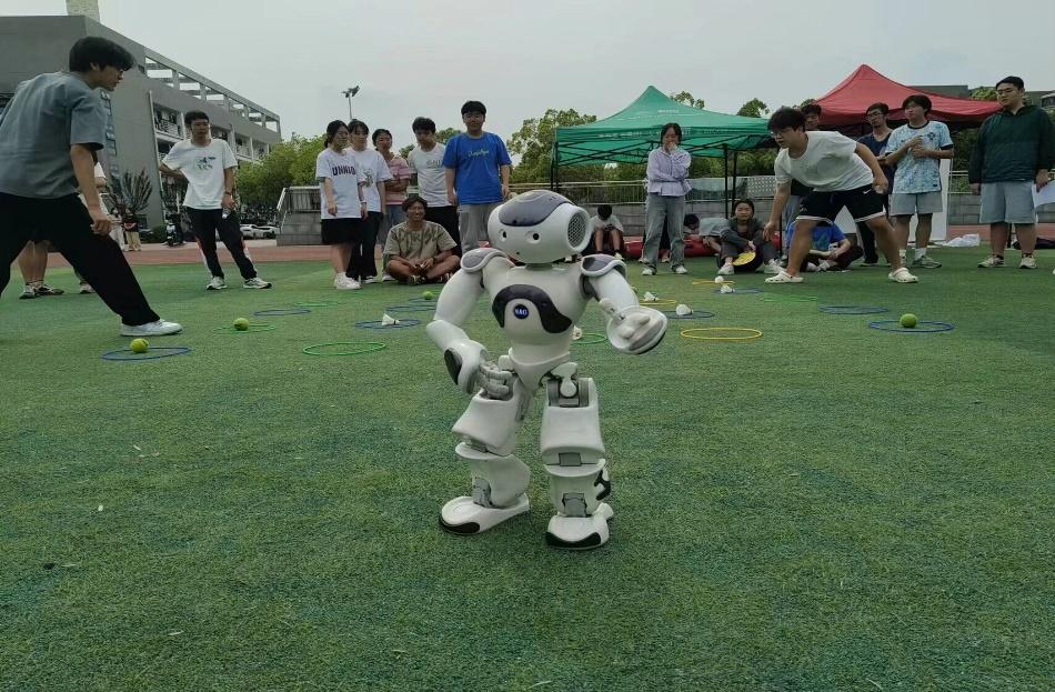 紧接着的“七人八足折返跑”比赛更是将团队合作的力量展现得淋漓尽致。各班级队伍选手紧紧相拥,肩并肩、心连心,与机械狗共同向前冲刺。随着“121……”的整齐口号声响起,他们步伐一致,配合默契,迅速向前推进。现场观众热血沸腾,为选手们的精彩表现欢呼喝彩。值得一提的是学院的“机器狗同学”也参与了这次折返跑比赛,还获得了第三名的好成绩呢!